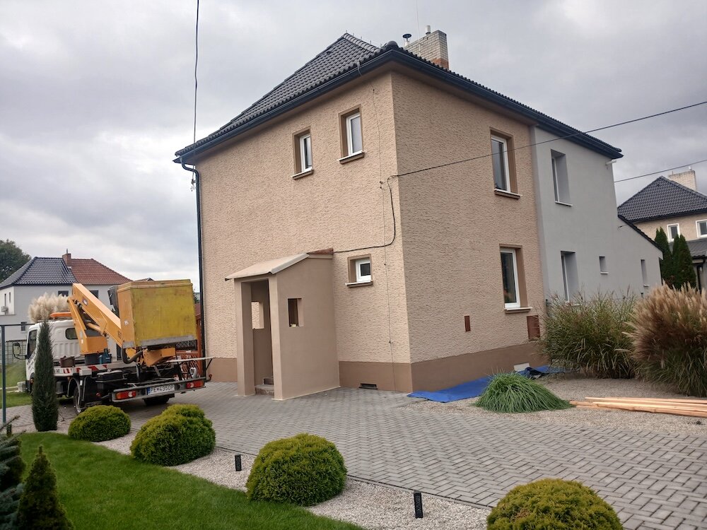 Striekanie brizolitu na rodinnom dome